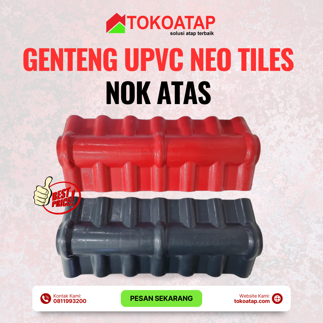 Keunggulan Aksesoris Genteng UPVC TOP Ridge : ⦁ Aksesoris Genteng UPVC TOP Ridge merupakan pengikat kuda-kuda dengan struktur lainnya pada atap dan genteng ⦁ Posisinya memanjang sesuai dengan panjang rangka atapnya sebagai sambungan antara bidang atap satu dengan yang lain jurai ini digunakan apabila suatu bangunan memiliki lebih dari satu bidang atap ⦁ Ringan dan warna tidak mudah luntur karena terkena sinar matahari langsung ⦁ Bubungan dengan bahan UPVC kokoh, tahan pecah, bebas bocor Aksesoris Genteng UPVC Top Ridge Hitam & Merah: ⦁ Warna hitam & merah ⦁ Material berbahan dasar UPVC ⦁ Aksesoris genteng ⦁ Tipe Nok Top Ridge